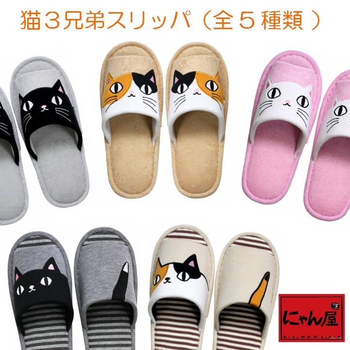 スリッパ ルームシューズ かわいい 猫グッズ 雑貨 プレゼント 猫好き 猫柄 おしゃれ インテリア にゃん屋 猫3兄弟 スリッパ 全5種 A 04 猫 雑貨ショップ にゃん屋 通販 Yahoo ショッピング